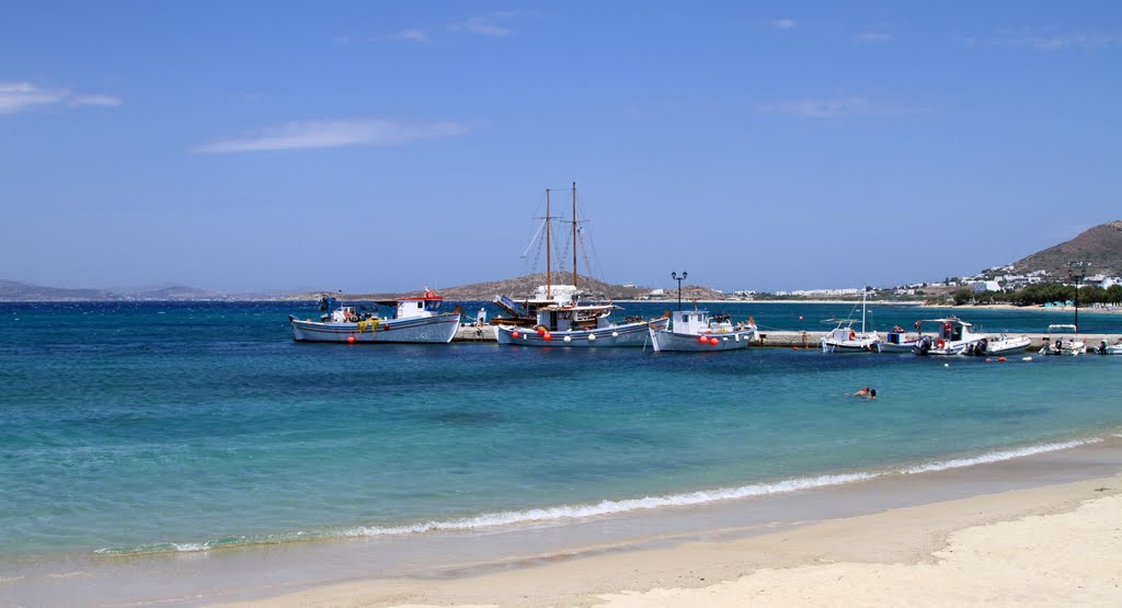 The beach of Agia Anna, a continuation of Agios Prokopios beach, is one of the most famous and beautiful places in Naxos island. A picturesque little port with fishing boats lies towards the end of the beach.Sun umbrellas and sun beds, set up in front of cafeterias, bars and taverns, are to be found along the greater part of the beach. However, the segment by the chapel of Agios Nikolaos is dotted with windless little bays that are ideal for those looking for peace and relaxation.